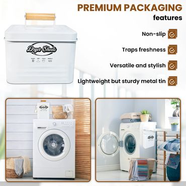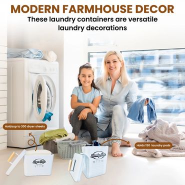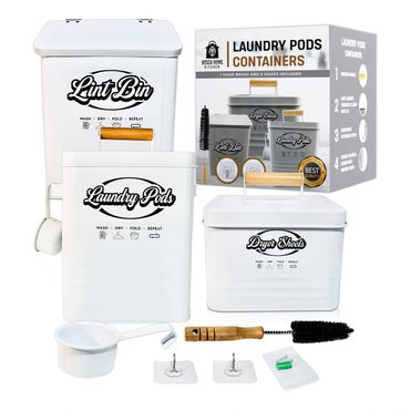 Transform your laundry space with these stylish and functional laundry storage containers. Whether you're organizing dryer sheets, laundry pods, or lint, this set provides all you need for efficient laundry room organization. The modern design and cohesive color scheme create a harmonious look, turning your laundry chores into a luxurious experience.